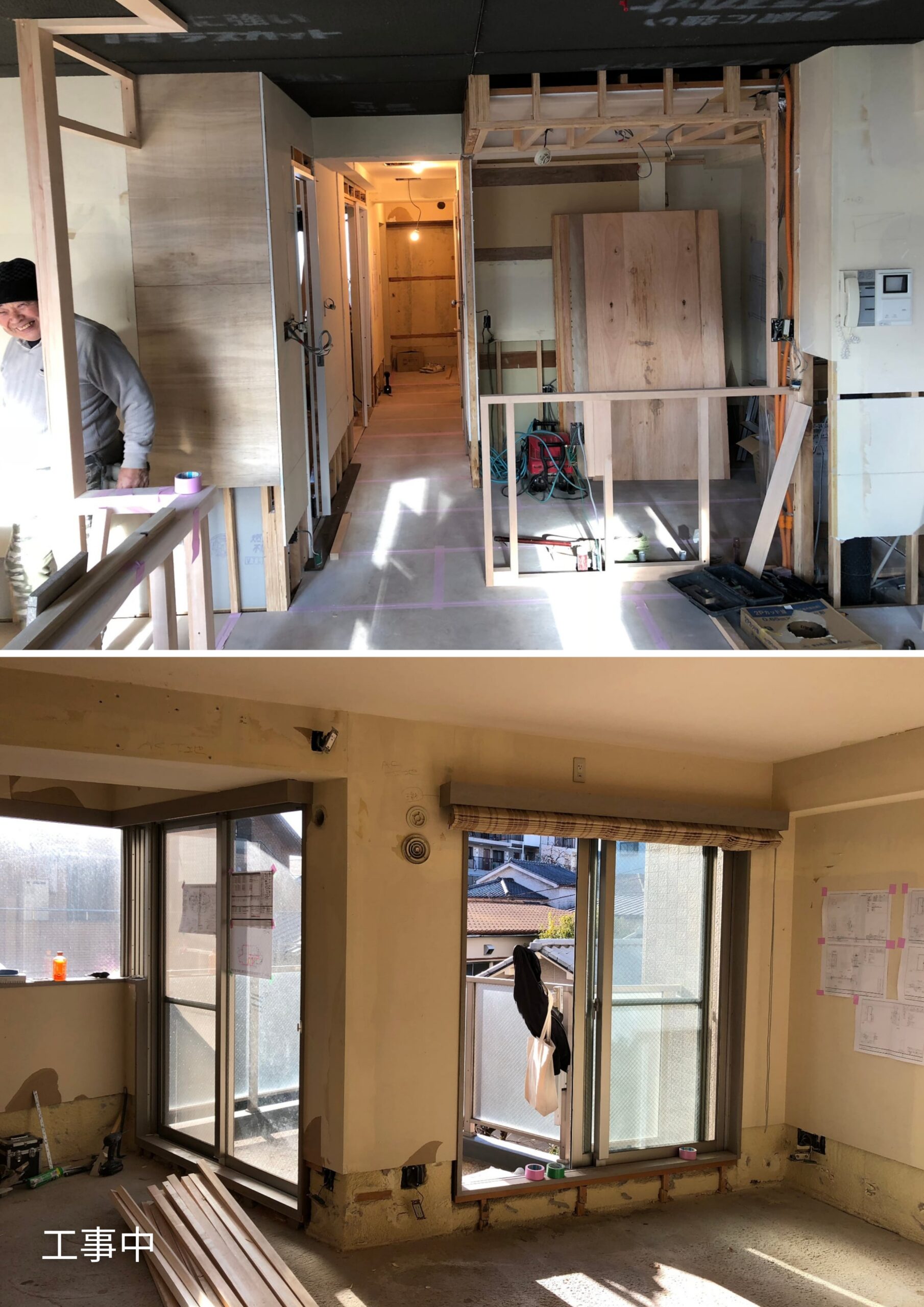 最近のリノベーションのご依頼は、「1部屋をなくして、リビングダイニングを広くしたい」というご要望が多くなっています。しかし、今回のご夫婦は「将来の子どものための部屋を確保したい」ということでした。そのため、ユニットバス以外の設備・照明・建具をすべて交換し、間取りを一部変更。リビングを適切な広さで残しながら、1部屋増やす形をとっています。